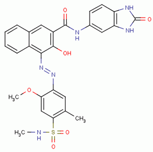 Taxalluslar:2-Naftalenekarboksamid, N- (2,3-dihidro-2-okso-1H-benzimidazol-5-yil) -3-gidroksi-4 - ((2-metoksi-5-metil-4 - ((metilamino) sulfonil)) fenil) azo) -; 2-Naftalenekarboksamid, N- (2,3-dihidro-2-okso-1H-benzimidazol-5-yil) -3-gidroksi-4- (2- (2-metoksi-5-metil-4) - ((metilamino) sulfonil) fenil) diazenil) -; N- (2,3-Dihidro-2-okso-1H-benzimidazol-5-yil) -3-gidroksi-4 - ((2-metoksi-5-metil-4 - ((metilomino) sulfonil) fenil) azo) naftalin-2-karboksamid; 12516; Chuqur qoraqo'tir; Doimiy Carmine HF4C; Peony Red [HO]; ; (4Z) -4- {2- [2-metoksi-5-metil-4- (metilsülfamoyl) fenil] gidraziniliden} -3-okso-N- (2-oxo-2,3-dihidro-1H-benzimidazol-5 -yl) -3,4-dihidronafталen-2-karboksamid